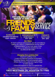 Join us for our Glorious Praise Night – Every Last Saturday Of Each Month.